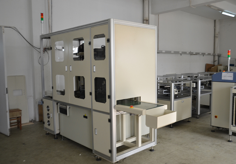 1.機臺內部為鋼架結構,采用60*60mm方通焊接加工模組安裝架,外部四周采用封板配亞克力觀察窗式